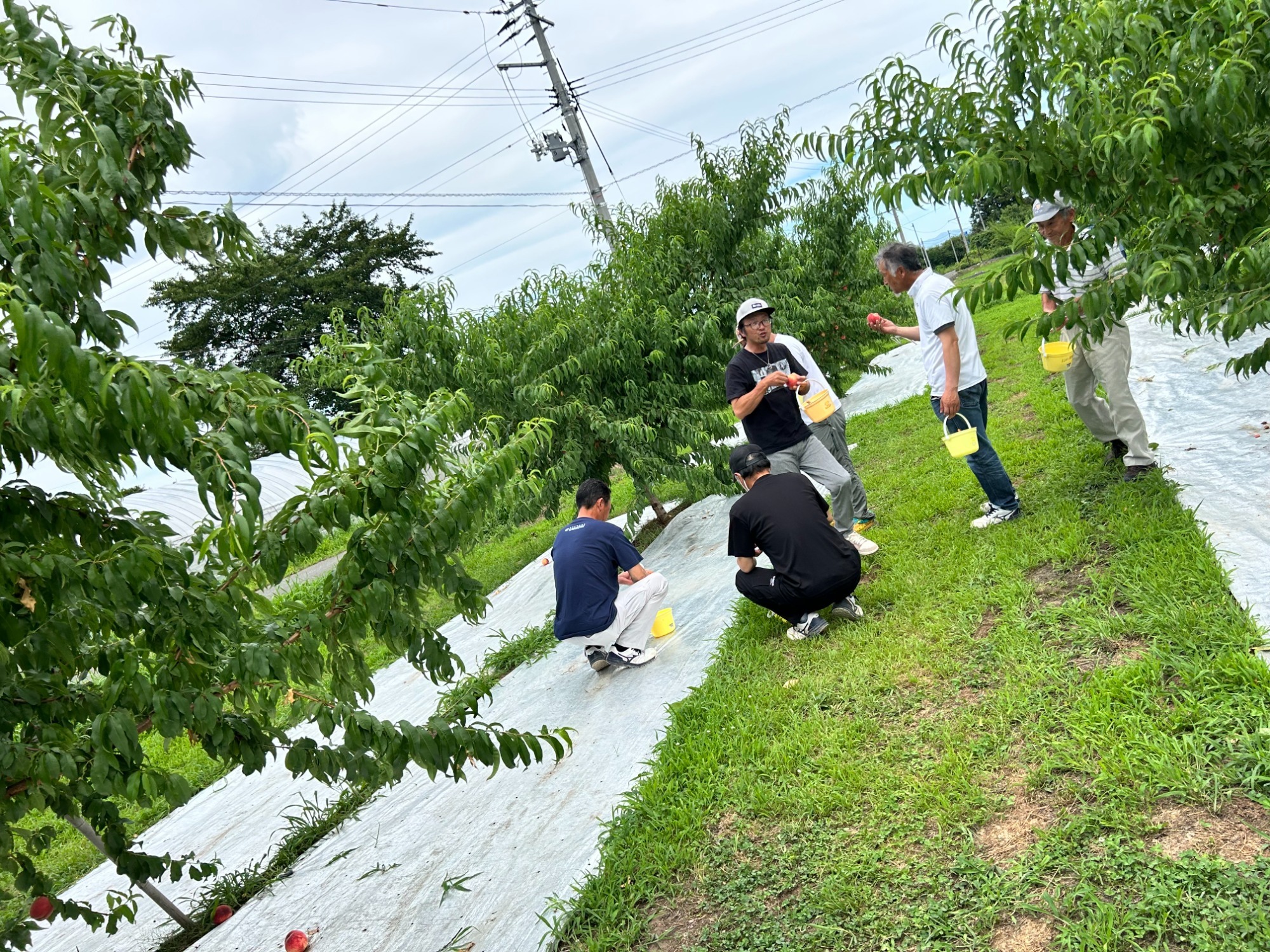福利厚生の一環で、福島市の果樹園へ桃狩りに行ってきました。
